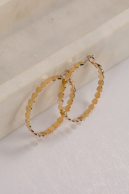 With a dainty presence and a love-inspired design, the Ashley Gold Heart Hoop Earrings will take you far in terms of endless compliments! These chic earrings feature a lever back with a heart hoop design. Style the Ashley Earrings with anything from dresses to denim for an elevated look! Gold…