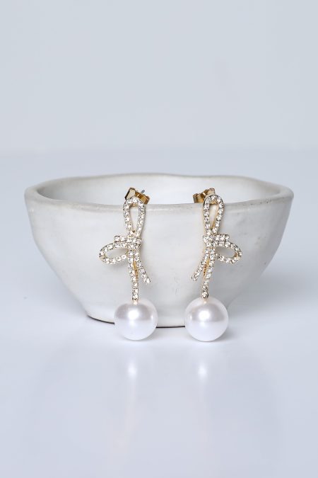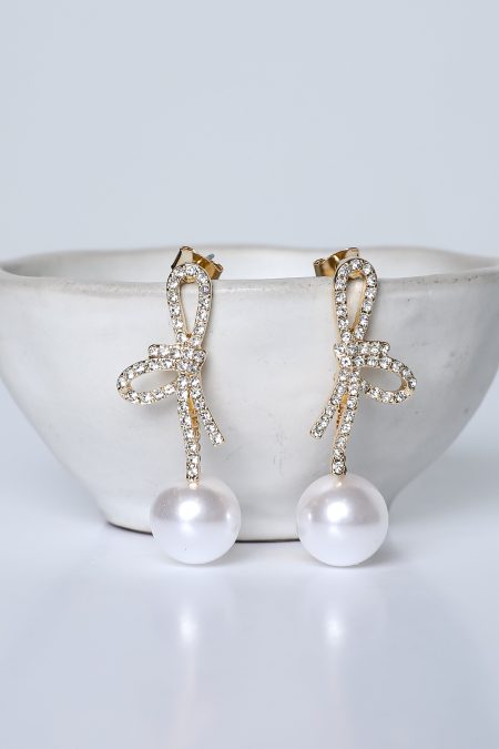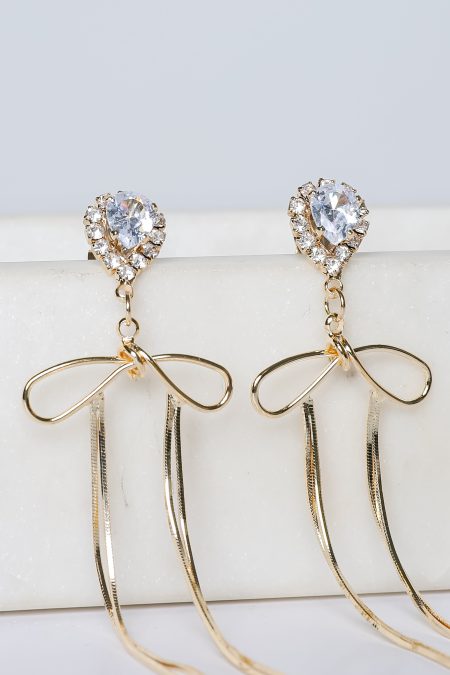 Lily Gold Rhinestone Bow Chain Drop Earrings